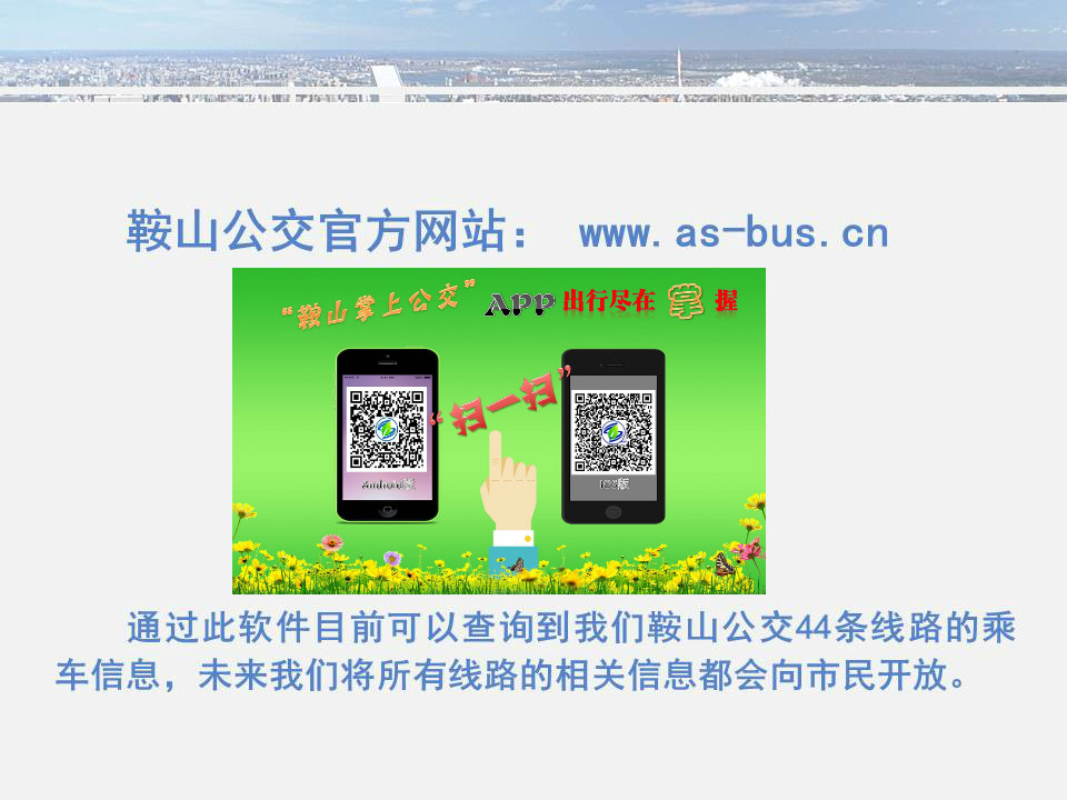 點(diǎn)點(diǎn)手機(jī)就可以看到公交車目前所在的位置,精準(zhǔn)地掐好出門時(shí)間,從而避免在惡劣天氣或高峰期苦苦候車,工作人員坐在調(diào)度室內(nèi)就能掌握車輛在路上的運(yùn)行情況……為方便廣大市民出行,基于安卓平臺(tái)開發(fā)的“鞍山掌上公交”官方APP將于11月15日正式上線試運(yùn)行,適用于蘋果IOS系統(tǒng)的APP將于明年初上線,市民可在公共交通總公司官網(wǎng)下載該軟件,并實(shí)現(xiàn)37條公交線路車輛實(shí)時(shí)查詢的便利服務(wù)。